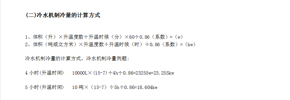 冷水機(jī)制冷量計(jì)算方式及冷水機(jī)選型計(jì)算匯總