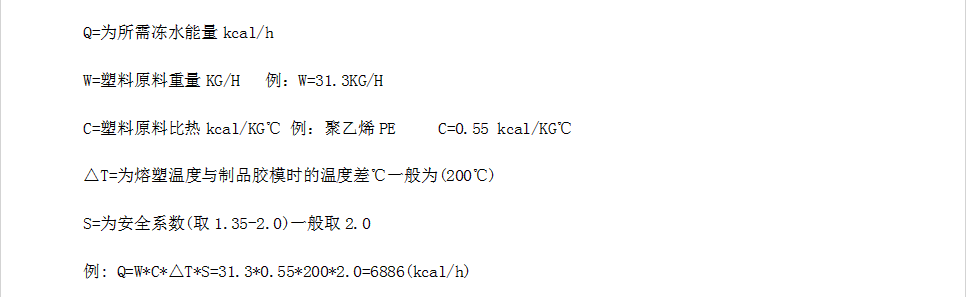 (一)如何選用適合自已的工業(yè)冷水機(jī)和小型冷水機(jī)呢,其實(shí)很簡單有一個(gè)選型公式;
